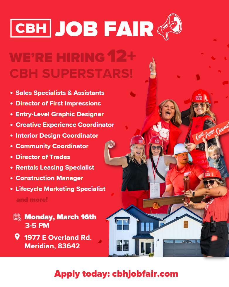 Interested in joining Team CBH? Stop by our CBH Homes Job Fair to learn more about career opportunities and what it’s like to be part of our team. Whether you have industry experience or are brand new and looking to get started, we welcome you to come connect with us.