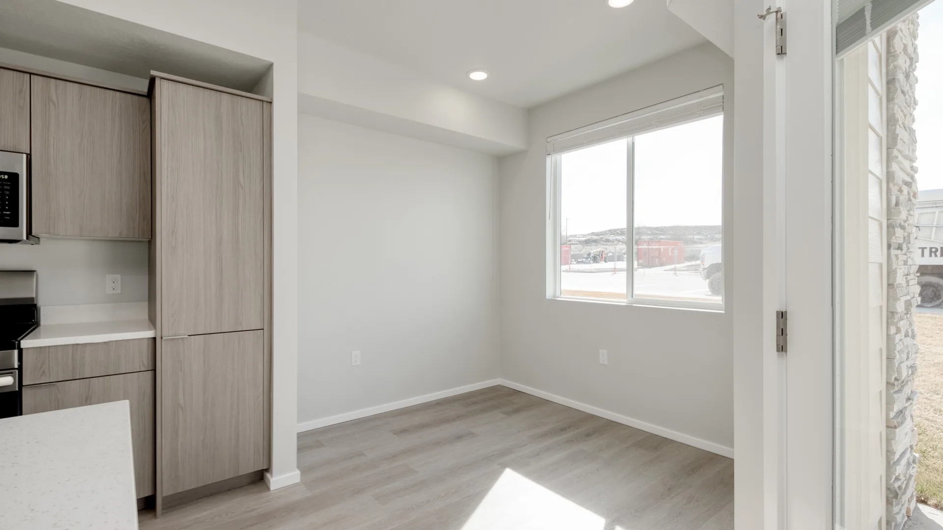 The kitchen is a standout feature, boasting ample counter space, sleek two tone -colored cabinets, quarts Countertops and an inviting breakfast bar perfect for barstools, and a cozy dining area. The stainless steel appliances add a touch of elegance.